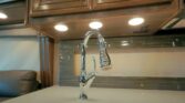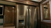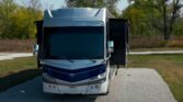 • Luxury Interior Amenities: Enjoy Ultra-Leather captain’s chairs, residential-style furniture, polished porcelain tile flooring, and a full-size French door refrigerator with exterior ice and water dispenser. Convection cooking, dishwasher, washer/dryer stackable appliances, and Aqua-Hot 400 water heater make this RV feel like a home.