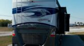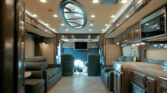 • Entertainment & Technology: 55” pop-up LED TV in the living room, 32” TVs in the cab and bedroom, 48” exterior LED TV, 10.2” Magnadyne touch screen radio with navigation, Bluetooth, App store, and Wi-Fi, plus a 7” backup color monitor.