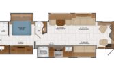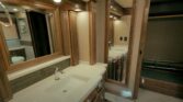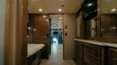 • Bathrooms: Full bath with large closet, linen storage, shoe rack, and a convenient mid-coach half bath.